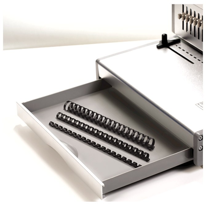 za format: A4; buši do 30 listova 80 gramskog papira; povezuje u standardnu plastičnu spiralu ; maksimalna veličina spirale do 51 mm; ručno koriči do 500 listova; mogućnost isključivanja svih noževa (21 nož), podesiva dubina bušenja; fioka za otpad, fioka za spirale; bušenje električno na dugme; metalna konstrukcija; dimenzija: 402x214x396 mm; težina: 19,40 kg; garancija na mašinu 2 godine