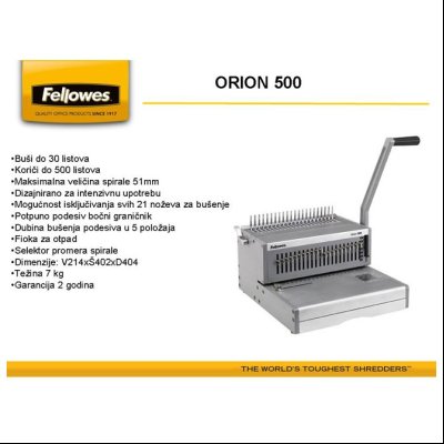 Treba ti Mašina za spiralno koričenje Orion Fellowes 5642601? U Standard online prodavnici te čekaju KORIČENJE odličnog kvaliteta. Pogledaj online!- Proizvođač: FELLOWES