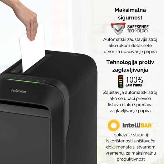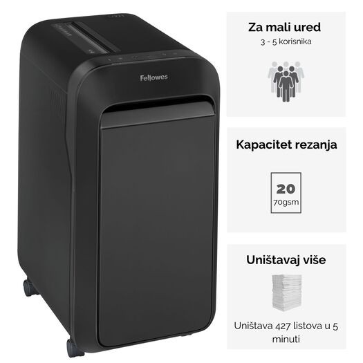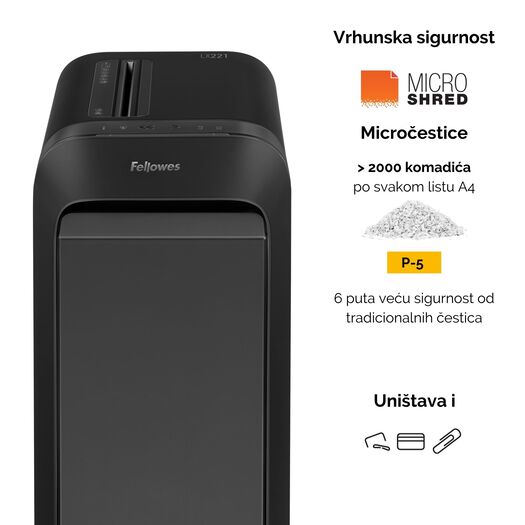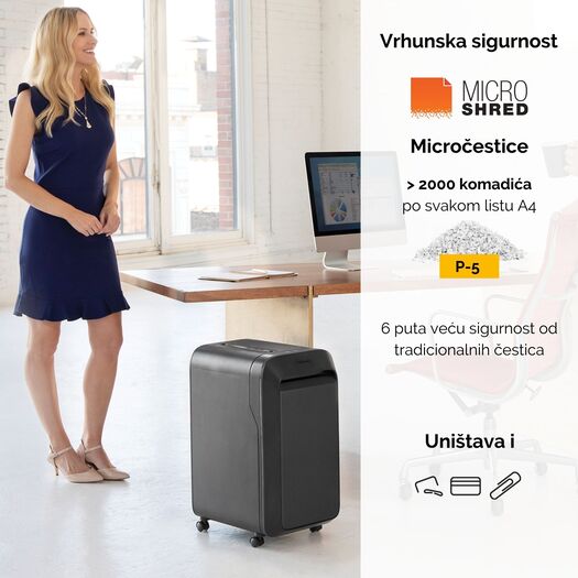 Kancelarijski uništivač dokumenata koji seče papir na izuzetno sitne čestice, namenjen firmama koje rade sa osetljivim podacima i ne žele kompromis u sigurnosti.- Proizvođač: FELLOWES
