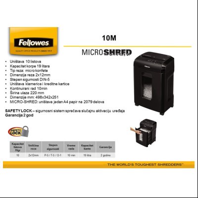 - Naziv Uništivač dokumentacije (mikro) 10M Fellowes 4630701