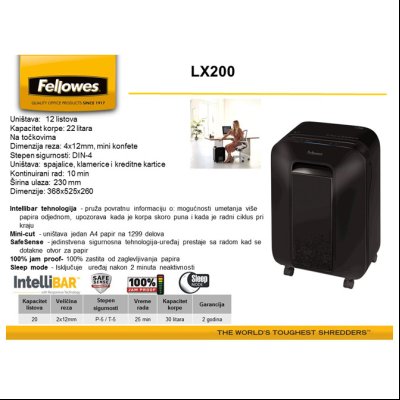 • Naziv Uništivač dokumentacije (mini) LX200 Fellowes 5502201 crni